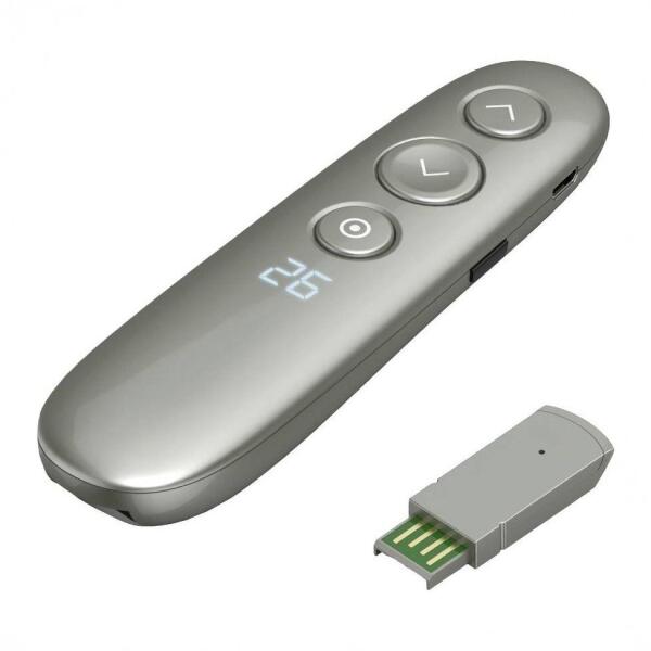 Vezeték nélküli távvezérlő digitális funkciókkal a bemutatók jobb irányításához és támogatásához. Teljesen helyettesíti a Hama 139917 távvezérlőt. dokumentum kezelés (lapozás/scrollozás) lehetősége MS PowerPoint és más irodai alkalmazásokbanfunkciók a bemutató indításához/megállításához és a képernyő elrejtéséhezAir mouse: egérfunkció, a kurzor vezérlése a távirányító mozgatásával, bal gombszoftver virtuális funkciókkal: digitális mutató, spotlámpa és nagyítószemélyre szabható szín, méret és funkcióváltás az alkalmazásban vagy közvetlenül a távirányítóvalvirtuális funkciók lehetővé teszik a bemutatón a képernyőn található helyek kiemelésétvibráló figyelmeztetések időzítője a bemutató időtartamáraLED kijelző az időzítő jelzésére és az alacsony akkumulátor figyelmeztetésérebeépített újratölthető akkumulátor USB-n keresztülenergiatakarékos kapcsolóUSB vevő beépített micro SD kártyaolvasóval, amely a távvezérlő házában tárolhatóa bemutatóját és más dokumentumait a behelyezett micro SD kártyán tárolhatjahatótávolság akár 20 mcsatlakozás: USB-A (2.4 GHz), micro USB (töltés)kompatibilis Windows 7/8/10/11, Mac OS 10.10 és újabb verziókkalméretek: 13 x 2.5 x 2.2 cmA csomag tartalma:Spot-Pointer távvezérlőUSB vevő kártyaolvasóvalmicro SD kártya (2 GB)micro USB töltőkábelszövet tasakhasználati útmutató
