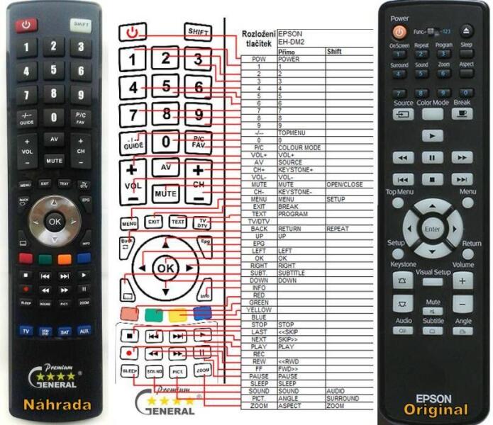 GENERAL EPSON EH-DM2, EMP-TWD10, EMP-W5D, EMP-DM1, EH-DM3 - kompatibilis General márkájú távirányító