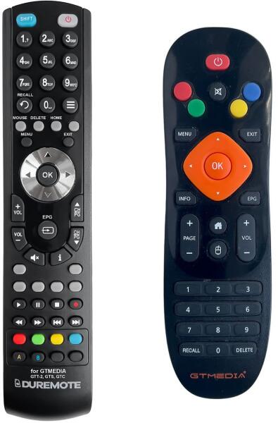 Az eredeti 1:1 arányú duplikátuma távirányító GTMEDIA GTC DVB-S2/C/T2 ISDB-T (GTC DVBS2/C/T2 ISDBT). Tökéletes 1:1 másolat, amelyet cégünk tervezett és gyártott – rendelkezik az összes funkcióval az eredeti távirányítóhoz ezeknél a GTMEDIA márkájú modelleknél:GT MEDIA GTT-2, GTC SATELLITE RECEIVER DVB-S2/C/T2 ISDB-T, GTS. (Előfordulhat, hogy nem minden kompatibilis modell szerepel a listában. Ha nem biztos benne, csak adja meg a készülékmodelljét (online chat-en vagy e-mailben), és mi azonnal ellenőrizzük, if kompatibilis-e az Ön készülékével. Az ellenőrzött kompatibilitást mi garantáljuk. ) A távirányító General Duremote pontosan ugyanazokkal a funkciókkal és gombnevekkel rendelkezik mint az eredeti távirányító.  Nincs szükség beállításra és nincs szükség kódokra, csak helyezze bele az elemeket, és máris használható a fent felsorolt modellekkel. A távirányító ebben a regisztrált márkájú távirányító változatban kapható General Duremote(balra látható)Ez egy speciális helyettesítő távirányító (NEM egy általános "univerzális távirányító"). Pontosan ellátja az eredeti távirányító összes funkcióját. Ugyanazok a gombok nevei, mint az eredeti távirányítón. A gombok neveinek nyomtatása kopásálló. Normál használattal nem távolítható el. 36 hónap garanciávalGeneral Duremote távirányítót az eredeti távirányítónak megfelelően tervezték és készítették el gombról gombra. A távirányítót Csehországban tervezték, gyártották és tesztelték. Minden General-Duplicate távvezérlő megfelel a CE és a ROHS szabványoknak. EGYSZERŰ ÉS INTUITÍV HASZNÁLAT: Más általános/univerzális helyettesítő távirányítókkal ellentétben a General Duremote távirányító gombjai 100%-ban helyesen vannak felcímkézve. Összehasonlításként: más általános/univerzális helyettesítők standard nevekkel/leírásokkal és gombkiosztással rendelkeznek a költségek csökkentése érdekében, ami azt eredményezi, hogy a gombcímkék gyakran nem felelnek meg. .