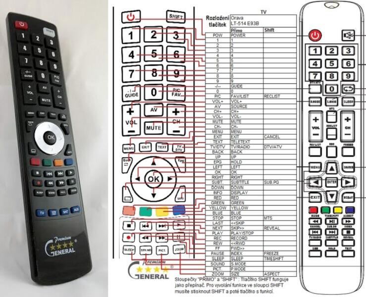 GENERAL ORAVA LT-514 LED E93B, LT-827 LED E93B - kompatibilis General márkájú távirányító