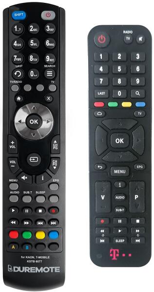 Az eredeti 1:1 arányú duplikátuma távirányító T-MOBILE KSTB6077. Tökéletes 1:1 másolat, amelyet cégünk tervezett és gyártott – rendelkezik az összes funkcióval az eredeti távirányítóhoz ezeknél a T-MOBILE márkájú modelleknél:KSTB6077, KSTB6078. (Előfordulhat, hogy nem minden kompatibilis modell szerepel a listában. Ha nem biztos benne, csak adja meg a készülékmodelljét (online chat-en vagy e-mailben), és mi azonnal ellenőrizzük, if kompatibilis-e az Ön készülékével. Az ellenőrzött kompatibilitást mi garantáljuk. ) A távirányító General Duremote pontosan ugyanazokkal a funkciókkal és gombnevekkel rendelkezik mint az eredeti távirányító.  Nincs szükség beállításra és nincs szükség kódokra, csak helyezze bele az elemeket, és máris használható a fent felsorolt modellekkel. A távirányító ebben a regisztrált márkájú távirányító változatban kapható General Duremote(balra látható)Ez egy speciális helyettesítő távirányító (NEM egy általános "univerzális távirányító"). Pontosan ellátja az eredeti távirányító összes funkcióját. Ugyanazok a gombok nevei, mint az eredeti távirányítón. A gombok neveinek nyomtatása kopásálló. Normál használattal nem távolítható el. 36 hónap garanciávalGeneral Duremote távirányítót az eredeti távirányítónak megfelelően tervezték és készítették el gombról gombra. A távirányítót Csehországban tervezték, gyártották és tesztelték. Minden General-Duplicate távvezérlő megfelel a CE és a ROHS szabványoknak. EGYSZERŰ ÉS INTUITÍV HASZNÁLAT: Más általános/univerzális helyettesítő távirányítókkal ellentétben a General Duremote távirányító gombjai 100%-ban helyesen vannak felcímkézve. Összehasonlításként: más általános/univerzális helyettesítők standard nevekkel/leírásokkal és gombkiosztással rendelkeznek a költségek csökkentése érdekében, ami azt eredményezi, hogy a gombcímkék gyakran nem felelnek meg a gomb funkciójának, és ezért útmutatókra van szükség hozzájuk. Ez zavart okoz. .