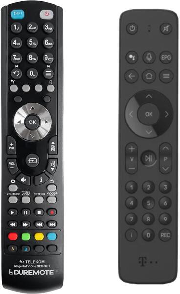 Az eredeti 1:1 arányú duplikátuma távirányító TELEKOM MagentaTV One SEI804DT. A távirányító General Duremote pontosan ugyanazokkal a funkciókkal és gombnevekkel rendelkezik mint az eredeti távirányító.  Nincs szükség beállításra és nincs szükség kódokra, csak helyezze bele az elemeket, és máris használható a fent felsorolt modellekkel. A távirányító ebben a regisztrált márkájú távirányító változatban kapható General Duremote(balra látható)Ez egy speciális helyettesítő távirányító (NEM egy általános "univerzális távirányító"). Pontosan ellátja az eredeti távirányító összes funkcióját. Ugyanazok a gombok nevei, mint az eredeti távirányítón. A gombok neveinek nyomtatása kopásálló. Normál használattal nem távolítható el. 36 hónap garanciávalGeneral Duremote távirányítót az eredeti távirányítónak megfelelően tervezték és készítették el gombról gombra. A távirányítót Csehországban tervezték, gyártották és tesztelték. Minden General-Duplicate távvezérlő megfelel a CE és a ROHS szabványoknak. EGYSZERŰ ÉS INTUITÍV HASZNÁLAT: Más általános/univerzális helyettesítő távirányítókkal ellentétben a General Duremote távirányító gombjai 100%-ban helyesen vannak felcímkézve. Összehasonlításként: más általános/univerzális helyettesítők standard nevekkel/leírásokkal és gombkiosztással rendelkeznek a költségek csökkentése érdekében, ami azt eredményezi, hogy a gombcímkék gyakran nem felelnek meg a gomb funkciójának, és ezért útmutatókra van szükség hozzájuk. Ez zavart okozhat, és a kézikönyvhöz való állandó visszatérés rendkívül kényelmetlen lehet a végfelhasználó számára. General Duremote távirányító gombjai pontosan azt teszik, amire fel vannak címkézve, így nem kell állandóan a kézikönyvekre és használati utasításokra hivatkozni. Nincs szükség kézikönyvek lapozgatására ehhez General Duremote!100%-BAN GARANTÁLT FUNKCIÓK: Az általános helyettesítő távirányítókkal ellentétben, minden egyes General Du. .