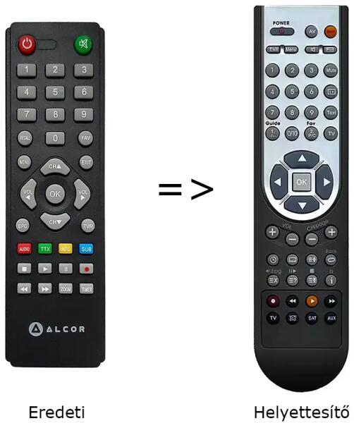 Alcor HDT-4400 beltéri egységhez távirányító, programozott A Helyettesítő távirányító egy sokoldalú, több készülék vezérlésére is alkalmas eszköz, amely jelenleg kifejezetten előre be van programozva a Alcor HDT-4400 beltéri egységhez , így azonnal használható, beállítást nem igény. A távvezérlőn megtalálja az összes funkciót, ami az adott eszközhöz(TV, DVD, stb. . ) kapott távvezérlőn is volt. A Alcor HDT-4400 beltéri egységhez távirányító, programozott távirányítót minden esetben új tartós elemmel használja az esetleg károsodások elkerülése érdekében! Az elem nem tartozék! Áruházunkban tartós elemet is tud rendelni a távirányító mellé. A távirányítókhoz külön használati utasítás nem jár, a TV, DVD, stb. . - hez kapott leírásban van feltüntetve a használata! Kompatibilis lista: