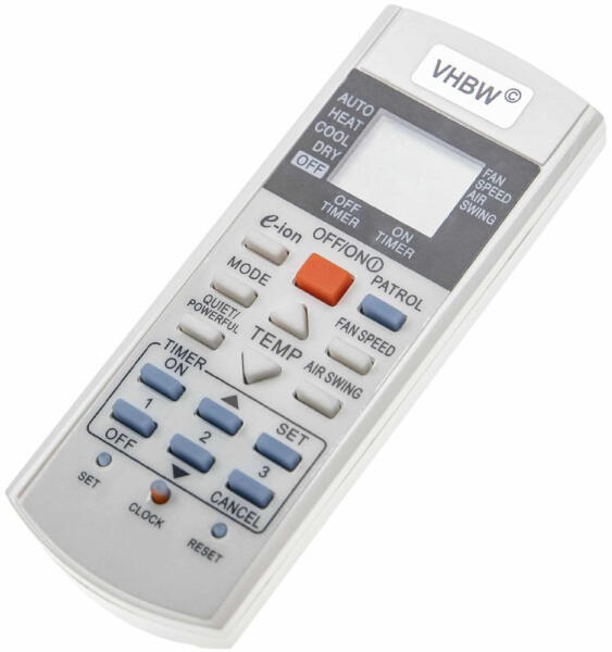 Leírás: Univerzális légkondicionáló távirányító Ideális tartalék távirányítóként vagy csereként, ha az előző légkondicionáló vezérlő megsérült vagy elveszett. Megtartja a korábbi légkondicionáló távirányító teljes funkcionalitását. Egyszerűen programozható a légkondicionáló rendszerrel. Az összes kompatibilitás és műszaki részlet lent található. Ez a kompatibilis távirányító bármilyen légkondicionáló rendszerrel használható, így tökéletes csere, ha az előző távirányító meghibásodott vagy rosszul lett elhelyezve. Ez a tartalék távirányító az előző összes funkciójával rendelkezik, és nagyon könnyen beállítható és programozható a légkondicionáló egységre az automatikus kereső funkció vagy a mellékelt kódok segítségével. Átgondolt kialakításának köszönhetően ez a távirányító nagyon felhasználóbarát. Szállítás tartalma: 1x távirányító. Műszaki adatok: Súly: 42 g, Méretek: 12,1 x 4,7 x 2,4 cm, Anyag: műanyag, Szín: fehér, Szükséges elem: 2x AAA Micro R03 (nem tartozék). VHBW - az okos mód. Kiváló minőségű pótalkatrészek és tartozékok az elektronikus készülékek élettartamának meghosszabbítása érdekében. ; Kompatibilis eszközök: Panasonic Klimageräte Panasonic A75C2817, Panasonic A75C2913, Panasonic A75C3060, Panasonic A75C3182, Panasonic A75C3298, Panasonic A75C3300